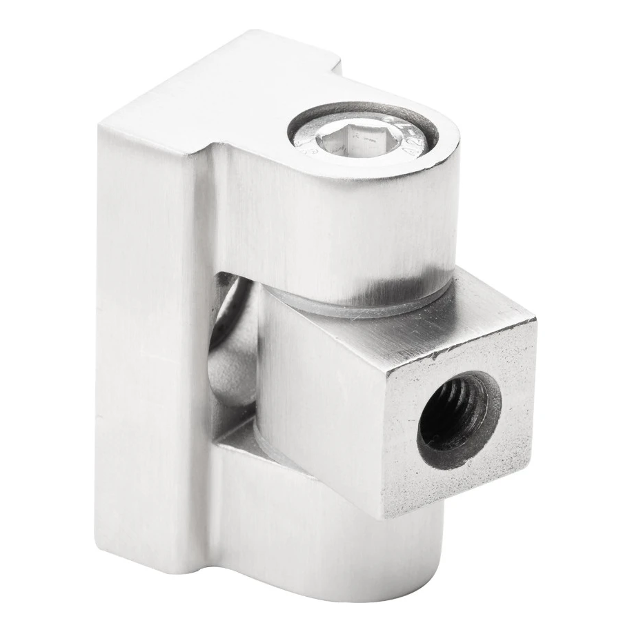 180° sarana lasipitimiä varten ruostumattomasta teräksestä AISI 304 satiinipinnalla — elementti ammattimaiseen lasirakenteiden asennukseen tasopinta-asennusjärjestelmässä. Mahdollistaa lasin avautumisen täydessä 180° kulmassa (90° kumpaankin suuntaan), mikä sallii vapauden suunnitella väliseiniä, ovia ja lasikoppeja ilman avautumiskulman rajoituksia.