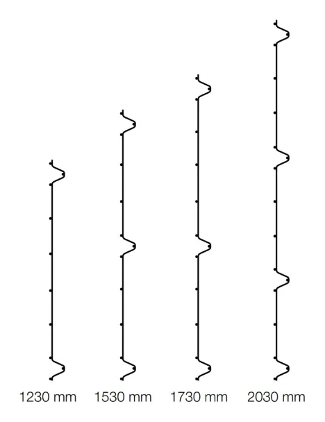 - Saatavilla olevat korkeudet: 1030 / 1230 / 1530 / 1730 / 2030 / 2230 / 2430 mm