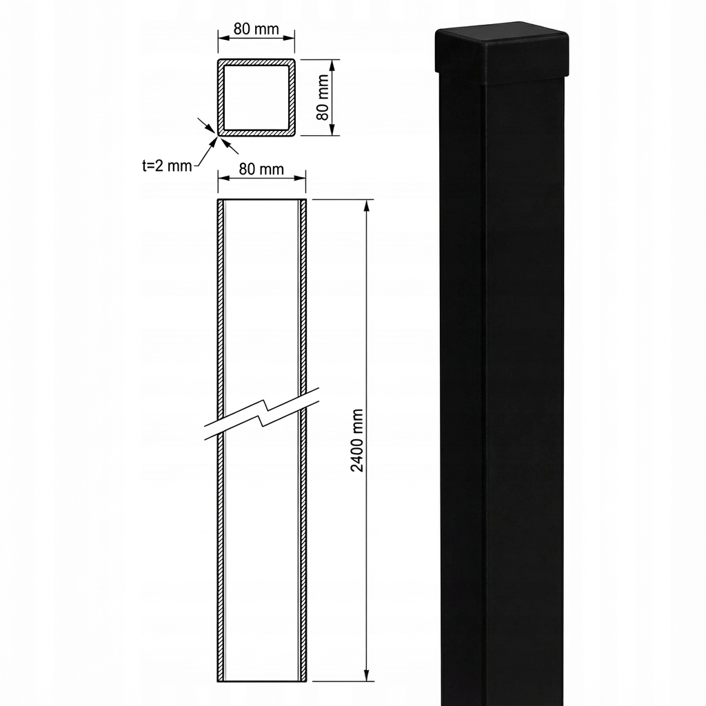 Postit on suunniteltu paneeliaidan, aitakenttien sekä porttien ja kevyiden porttirakenteiden asennukseen. Tukeva rakenne varmistaa vakaan kiinnityksen, joten tuote soveltuu erinomaisesti sekä yksityiseen että kaupalliseen käyttöön. Universaali 80x80 mm:n profiili mahdollistaa helpon yhteensopivuuden useimpien markkinoilla saatavilla olevien aitajärjestelmien kanssa. Toimitamme tuotteen 24 tunnin kuluessa arkipäivisin, ja toimitus tapahtuu kuriirin kuljettamalla lavalla koko maan alueelle. Pakkaukseen sisältyy musta tulppa, joka on sovitettu postin profiiliin.