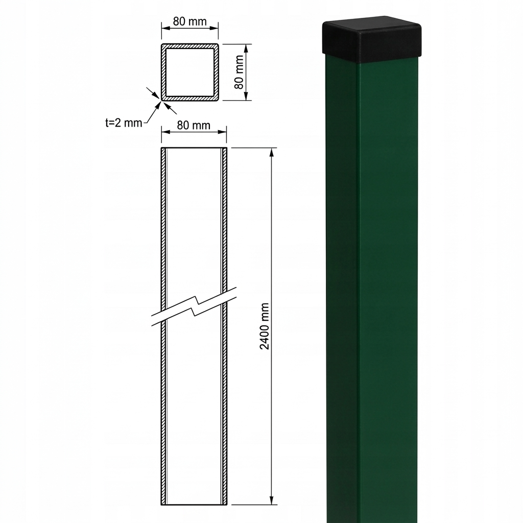Teräksinen aitatolppa 80x80 mm vihreä RAL 6005 – 240 cm
