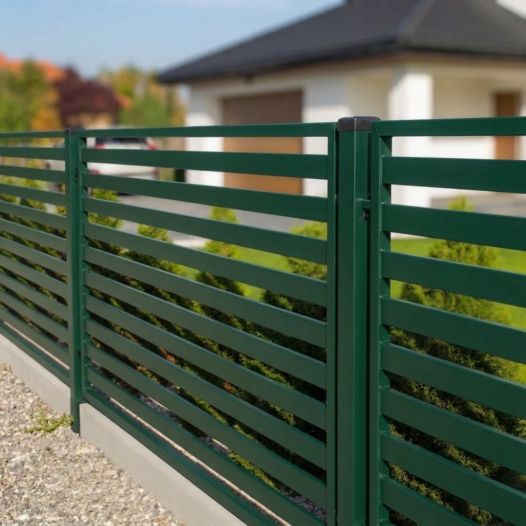Väri vihreä RAL 6005 on yksi suosituimmista sävyistä tontti- ja teollisuusaidoissa. Se sopii erinomaisesti yhteen puutarhan vihreän kanssa ja sulautuu huomaamattomasti ympäristöön, tarjoten samalla tyylikkään ja yhtenäisen ilmeen koko aitarakenteelle.