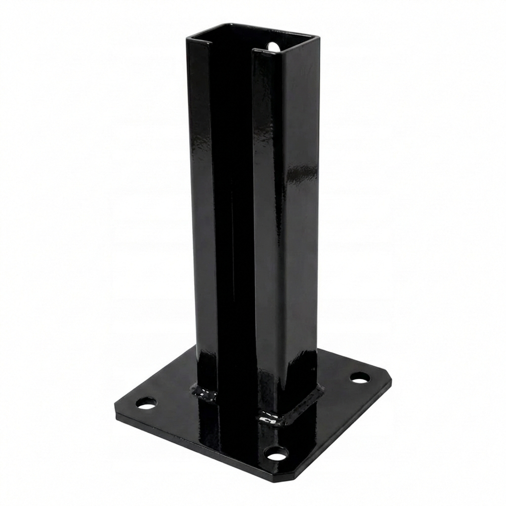 Aidan jalusta 60×40 mm on kestävä teräksinen tukijalka, joka on tarkoitettu paneelitolppien asennukseen betonialustalle. Galvaanisen sinkkauksen ja jauhemaalauksen ansiosta mustalla värillä (RAL 9005) tuote tarjoaa tehokkaan korroosiosuojan ja esteettisen ulkonäön — ihanteellinen ulkokäyttöön.