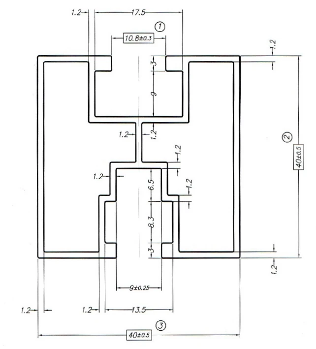 Esimerkki Alumiiniprofiili 10cm 40x40 kuusioruuveille