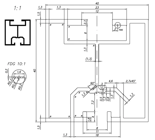 Alumiiniprofiili 443cm 40x40 vasararuuveille Anodisoitu