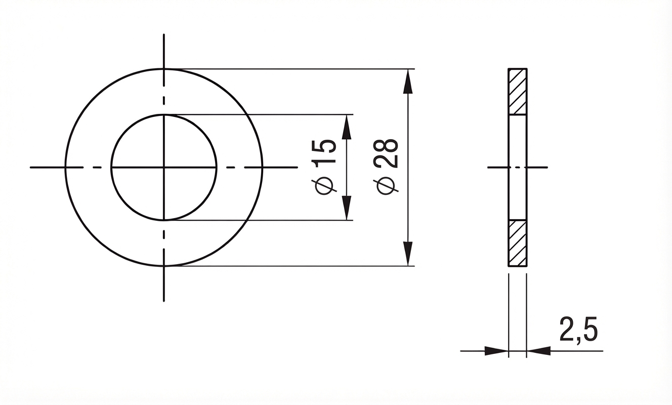 - Standardi: DIN 125 (vastaa ISO 7089/7090)