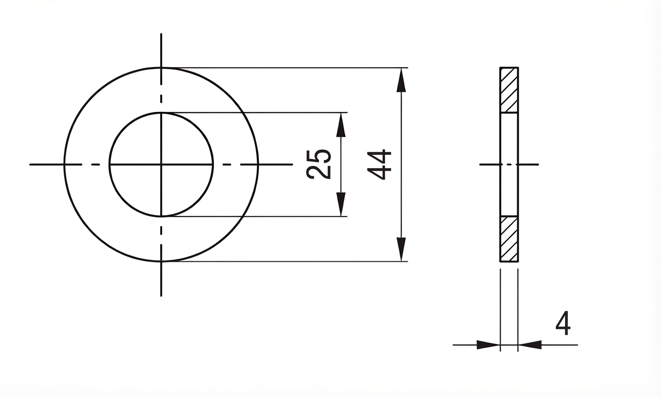 - Standardi: DIN 125 (vastaa ISO 7089/7090)