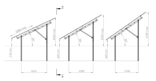 - Joustavuus: Mahdollisuus valita kallistuskulma (25°, 30° tai 35°) asennuksen aikana - voit näin tasoittaa maaston pientä vaihtelua ja mukauttaa kulman leveyspiiriisi