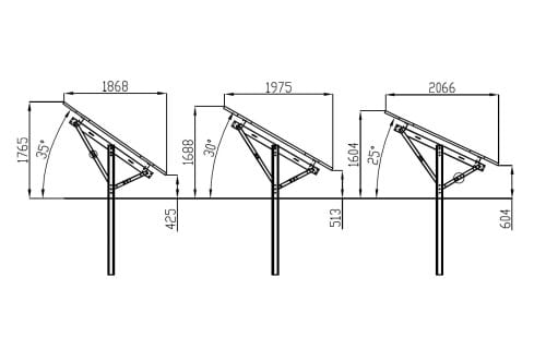 - Joustavuus: Mahdollisuus valita kallistuskulma (25°, 30° tai 35°) asennuksen aikana - voit näin tasoittaa maaston pienet erot ja mukauttaa kulman leveyspiiriisi
