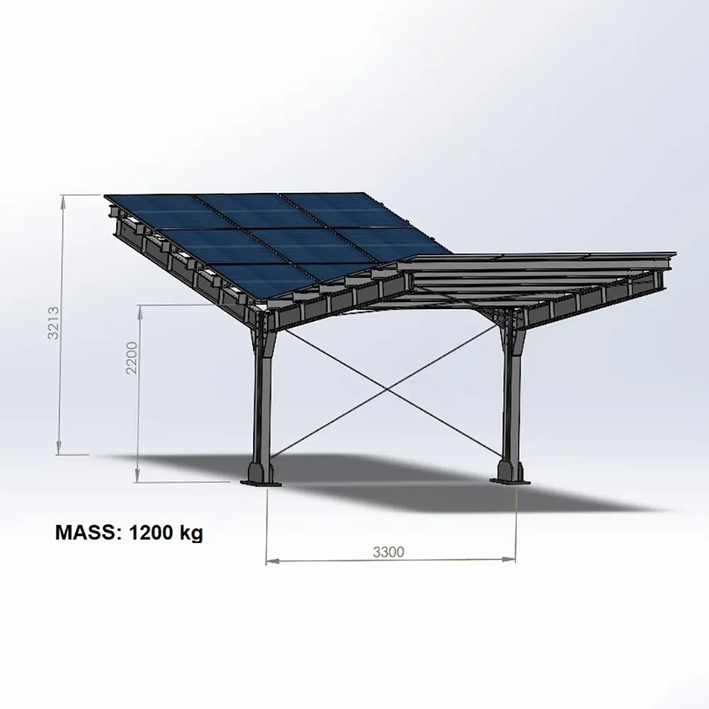 Aurinkosähköinen autokatos 2 ajoneuvolle T 11,4 m x 3,3 m