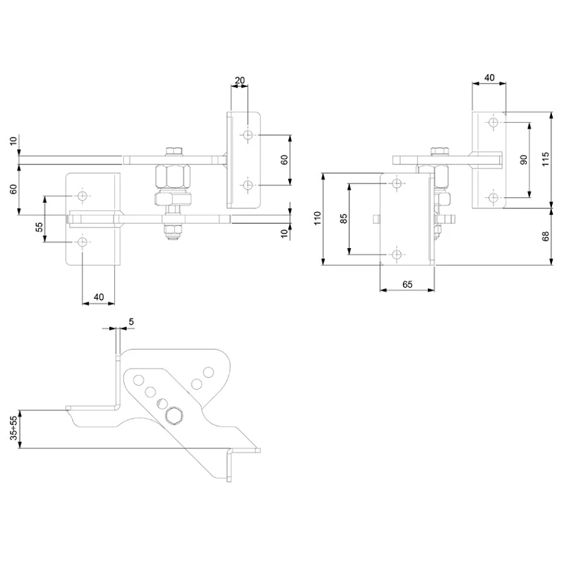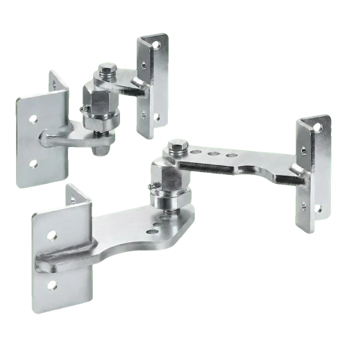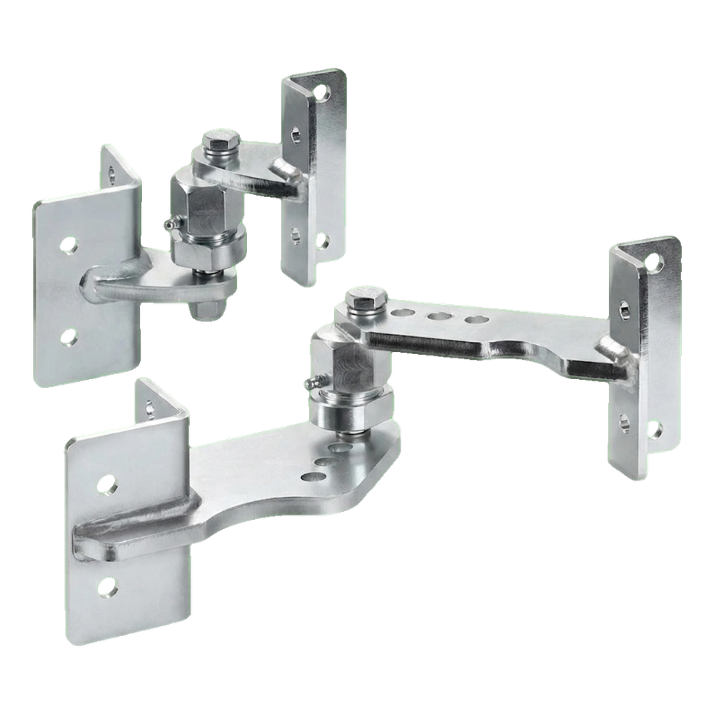 Comunello RS-100F saranakokonaisuus on omistettu kaksilehtisten porttien asennukseen kaltevilla alueilla — ajoteillä, sisääntuloväylillä rinteessä sijaitseville tonteille, sekä kaikkialla siellä, missä maan taso pylvään luona eroaa tasosta lehden päässä. Epäkeskinen mekanismi mahdollistaa lehden kallistuskulman tarkan säädön suoraan asennuksen aikana, mikä merkittävästi nopeuttaa asennustöitä ja eliminoi välikappaleiden käytön tarpeen.