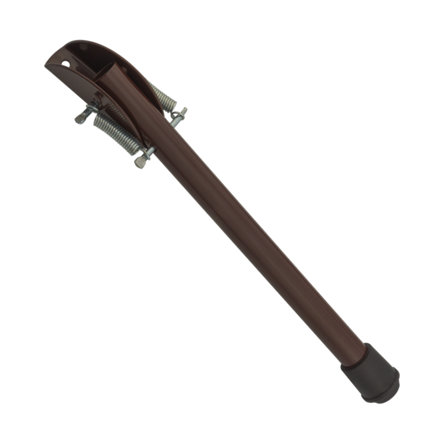 Joustavamekanismi mahdollistaa jalan nopean avaamisen ja sulkemisen yhdellä jalan liikkeellä — ilman kumartumista. Kumijalka päässä varmistaa luotettavan tuen alustaan ja estää liukumisen sileillä pinnoilla, kuten keraamitiilit tai betonilattiat. Asennus on nopea eikä vaadi erikoistyökaluja — riittää, että kiinnität pidikkeen oven siipeen ruuveilla.