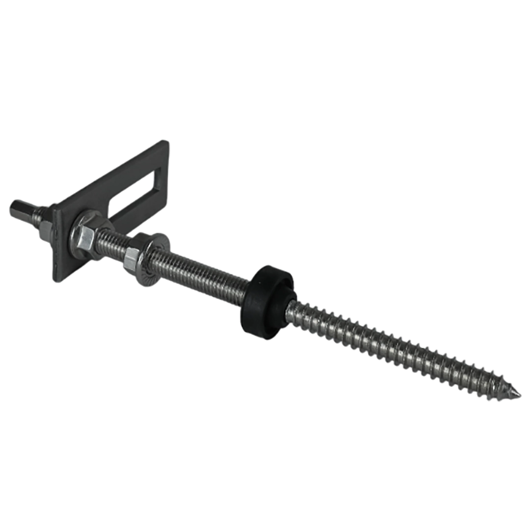Kaksoiskierreruuvi M10x200, monipuolinen ja kestävä tuote, joka on suunniteltu aurinkosähköasennuksiin. Kaksoiskierteinen ruuvi on suunniteltu kiinnittämiseen kattopaneeleihin, peltilevyihin, vyöruoteisiin tai tervapaperiin. Tässä tuotteessa on kaksoiskierreruuvi, jonka molemmissa päissä on eri kierteet. Toinen pää on suunniteltu helppoon kiinnittämiseen puisiin kattorakenteisiin, kun taas toinen pää mahdollistaa laippamuttereilla varustettujen sovittimien turvallisen kiinnityksen.