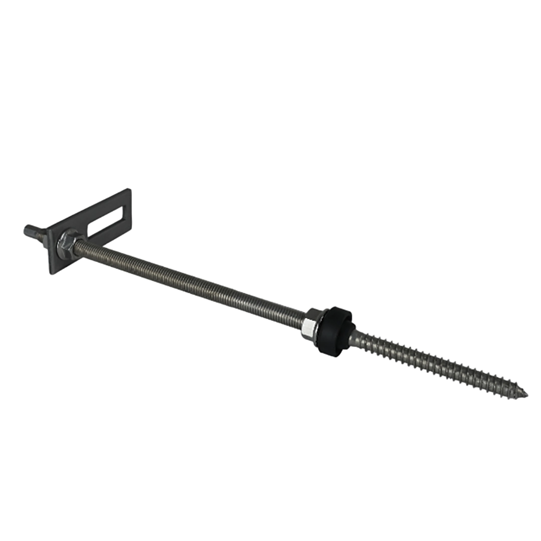 Kaksoiskierreruuvi M10x300, monipuolinen ja kestävä tuote, joka on suunniteltu aurinkosähköasennuksiin. Kaksoiskierteinen ruuvi on suunniteltu kiinnittämiseen kattopaneeleihin, peltilevyihin, vyöruoteisiin tai tervapaperiin. Tässä tuotteessa on kaksoiskierreruuvi, jonka molemmissa päissä on eri kierteet. Toinen pää on suunniteltu helppoon kiinnittämiseen puisiin kattorakenteisiin, kun taas toinen pää mahdollistaa laippamuttereilla varustettujen sovittimien turvallisen kiinnityksen.