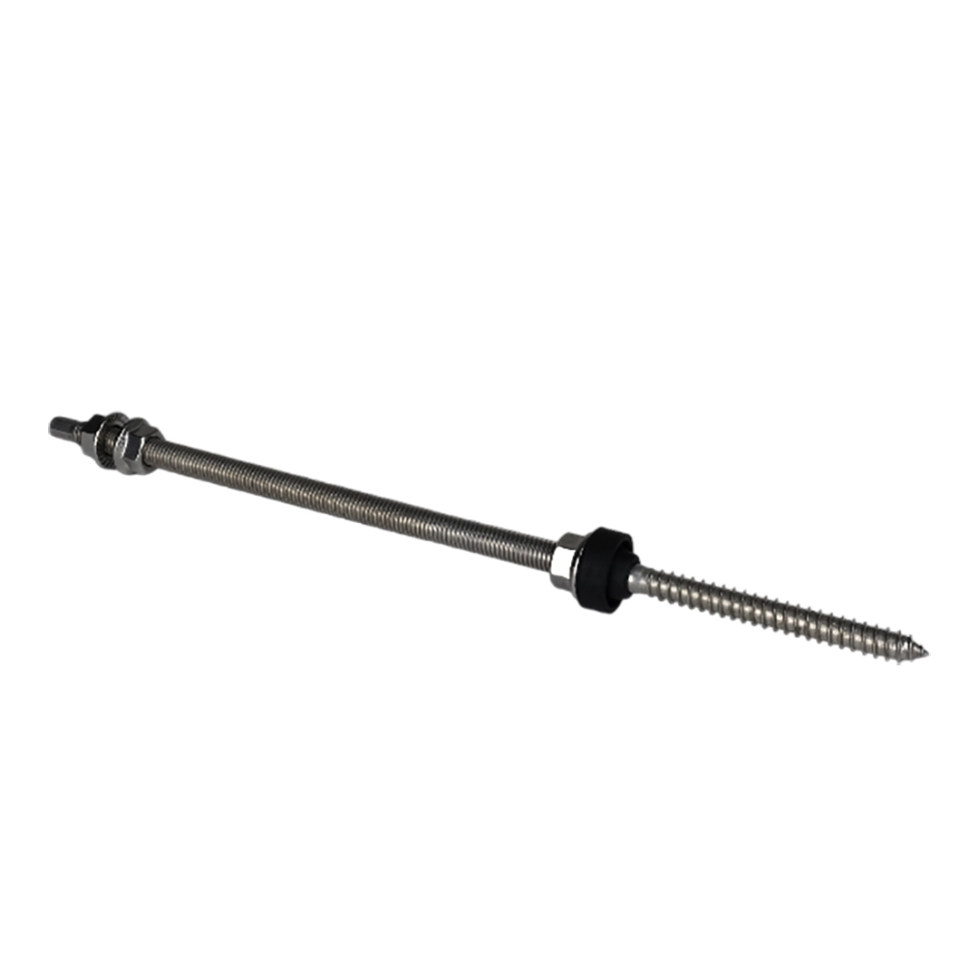 Kaksoiskierteinen ruuvi, yksi monista aurinkosähkölaitteiden asennukseen tarvittavista osista. Tuote asennetaan kattopäällysteisiin, pelteihin, bitumisiin kattolaattoihin tai huopakatteisiin. Osassa on kaksi erilaista kierrettä kummassakin päässä. Kierteinen pää ruuvataan suoraan katon puurakenteeseen. Toinen pää on tarkoitettu adapterien kiinnittämiseen laippamuttereilla.