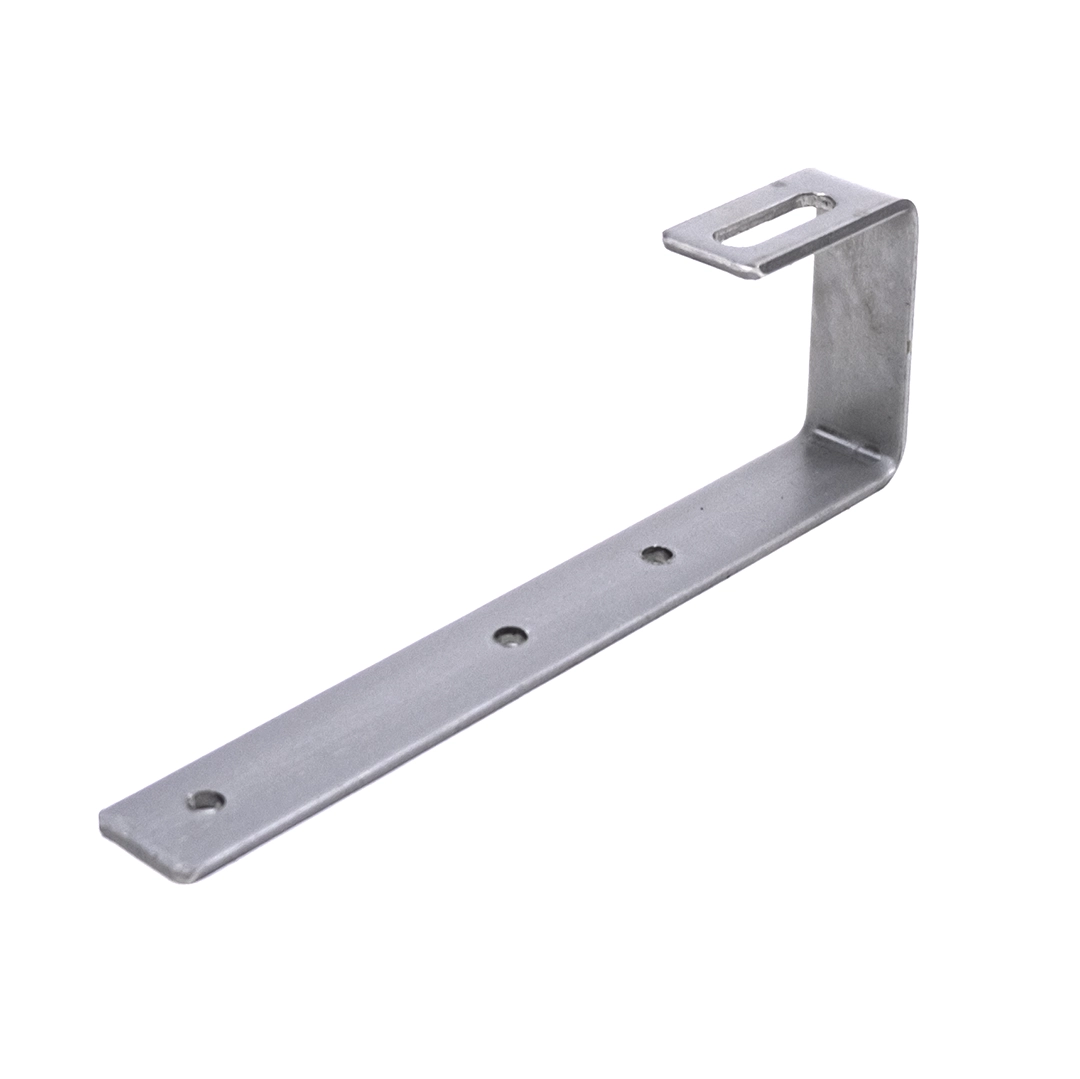 Kattokiinnike J liuskekattoja varten ruostumattomasta teräksestä H17 1.4016, mitat 239x30x4 mm, M10-reikä aurinkopaneelijärjestelmien profiileja varten.