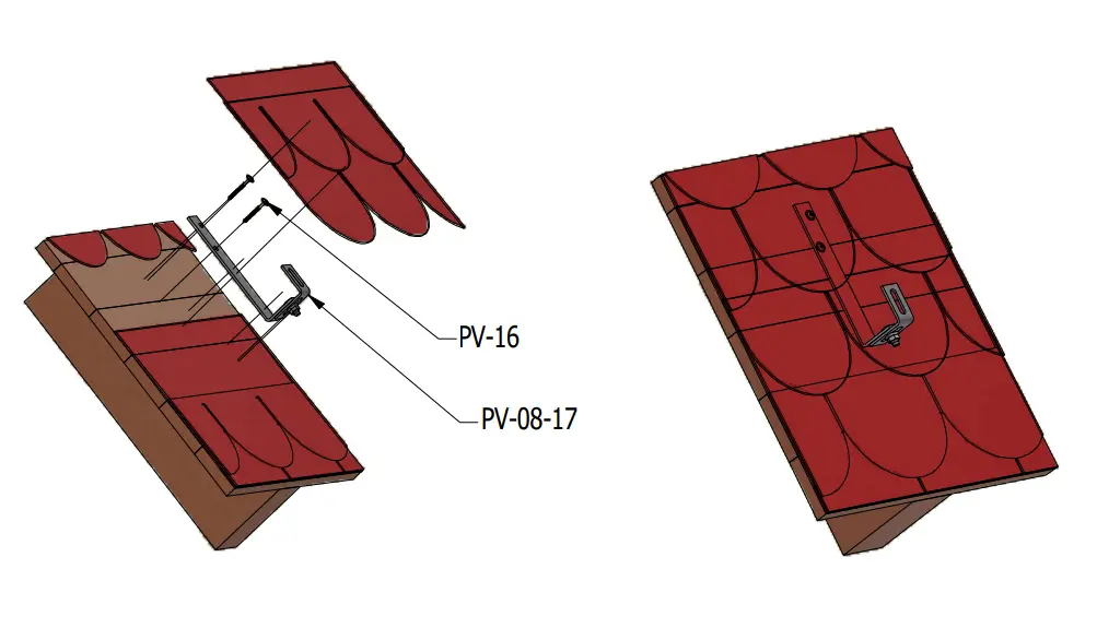 Kattokiinnike aurinkopaneelien asennuskiskojen kiinnittämiseen liuskekatteisiin ja bitumikattotiiliin. Ei säätömahdollisuutta, mikä edellyttää tasaista kattopintaa. Epätasaisten kattojen tapauksessa valitse kiinnikkeet yksittäisellä säädöllä.