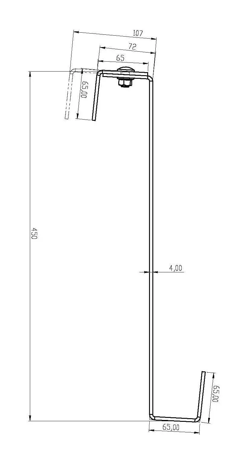 Säädettävä kattokiinnike S harjakatoille, ruostumaton teräs 1.4016, mitat 450x30x4 mm, M10-reikä aurinkosähköjärjestelmien profiileja varten.