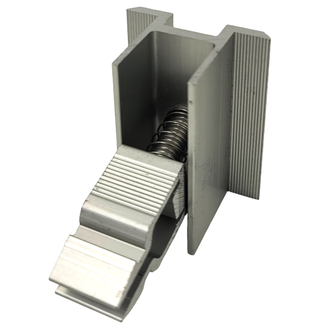 Keskipainekiinnike, jossa on napsautussalpa ja ruuvi, on kiinteä osa aurinkomoduulien asennusta. Keskipuristin on aurinkosähköasennusten kiinnityselementti, jolla aurinkosähköpaneeli kiinnitetään alumiiniseen rakenneprofiiliin. Sitä käytetään aurinkosähköpaneelien kiinnittämiseen sekä tasakatoille että harjakatoille.