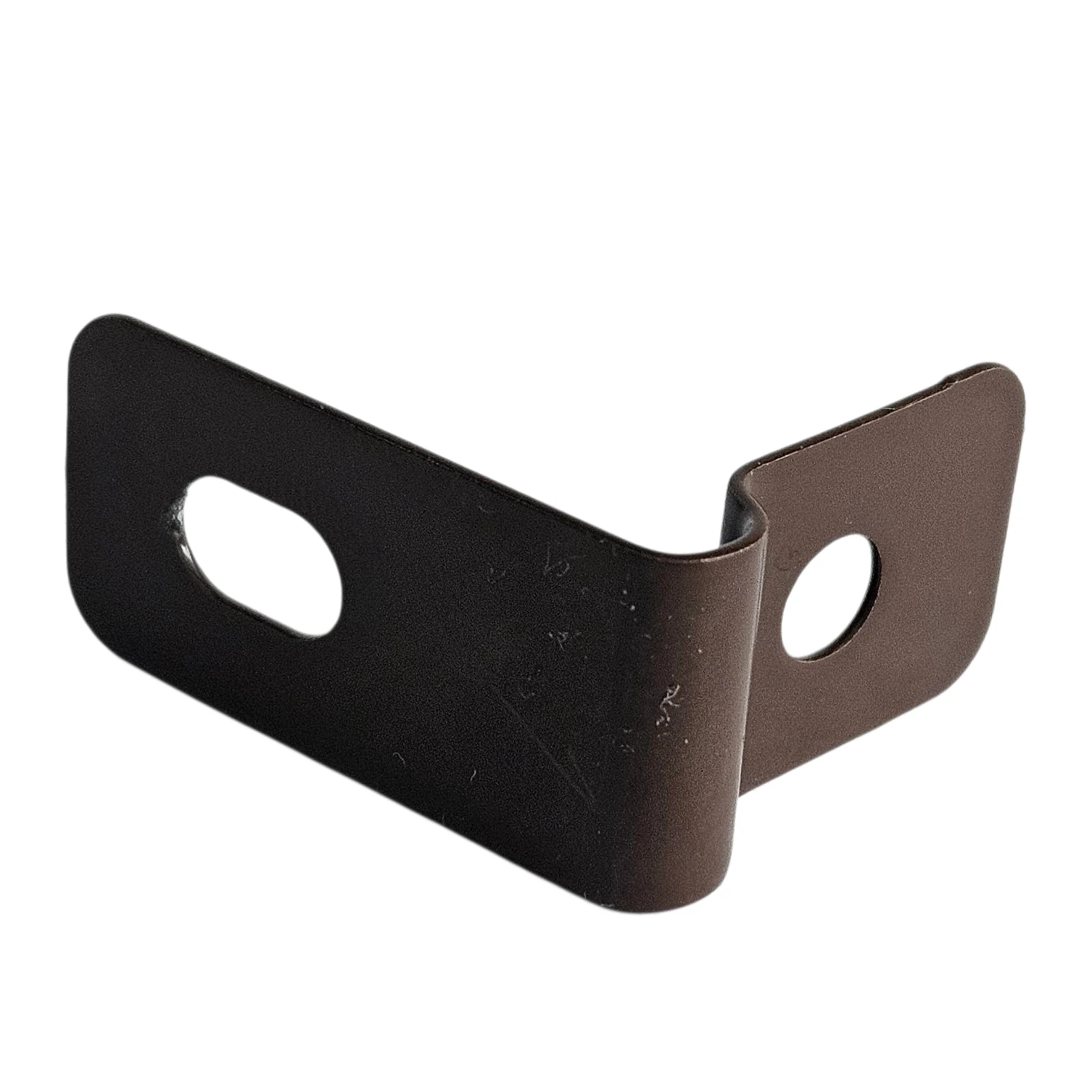 Käytännöllinen ja kestävä kiinnityshaka, kiinnike, panta 1/2 aitapaneeleille valmistettu sinkitystä teräksestä, jauhemaalattuna ruskeaksi.