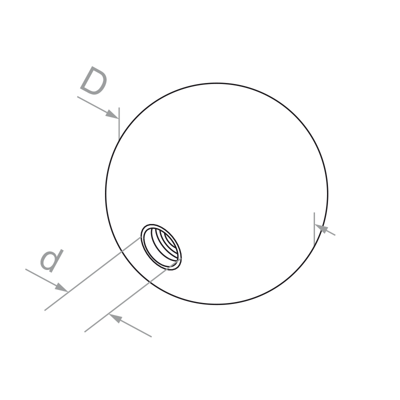Kiinniruvattava täysi pallo Ø 25 mm kaidetta varten – ruostumaton teräs AISI 304 satiini, kierre M8