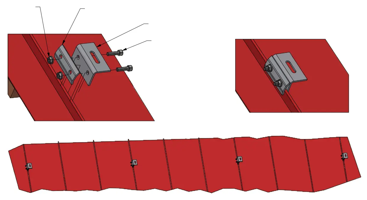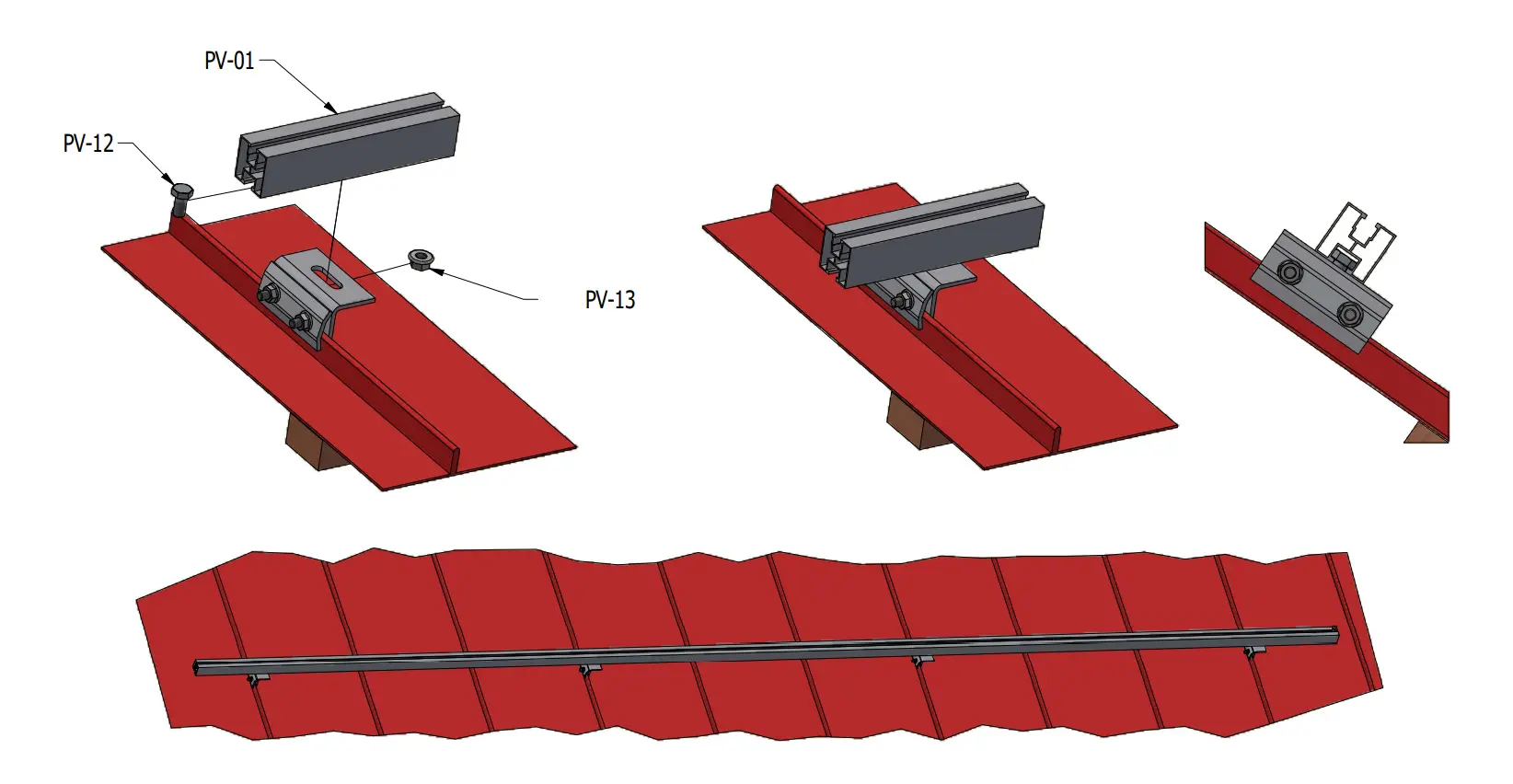 Profiilien asennuskiinnike, asennus pystysaumapeltikatolla. Mahdollistaa nopean asennuksen ilman kattotuolien etsimistä ja kattopinnan rakenteeseen puuttumista.