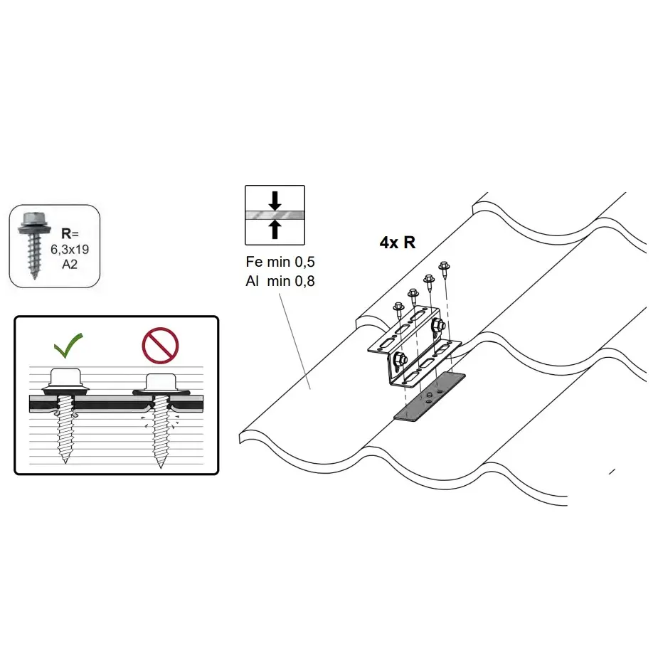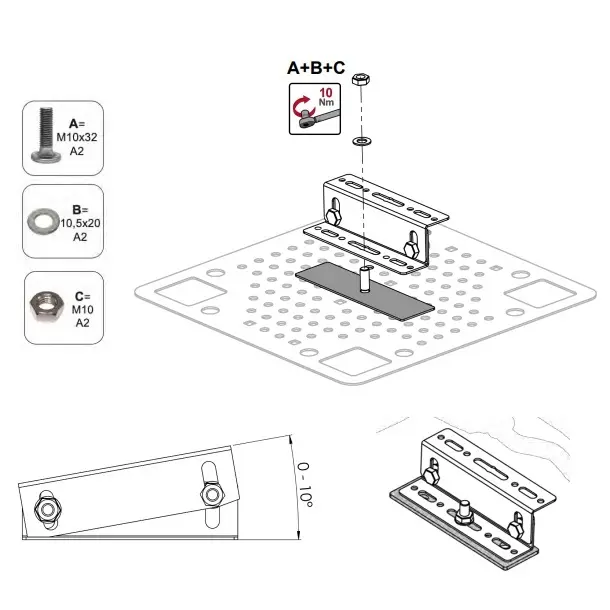 Kiinnityslevy kattokalvolle 375x375mm CWL - Ruostumaton teräs H17 1.4016 aurinkosähköjärjestelmiin.