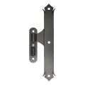Koristeellinen keskikulmainen nauhasarana pallokoristeella on tarkoitettu portinsiipien asennukseen. Kilven koristeelliset päätykuviot tyyliteltyjen lehtien muodossa antavat portille elegantin, taotun luonteen, ja massiivinen rakenne 5 mm litteäraudasta takaa kestävyyden ja luotettavuuden vuosiksi. Sarana on varustettu pyörivällä holkilla ja tapilla, mikä takaa porttisiipen sujuvan toiminnan.