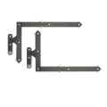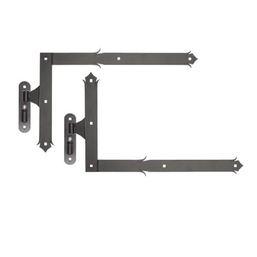 Koristeellisten kulmasaranoiden sarja tapilla tarkoitettu suurten ovien, porttien ja aitojen asennukseen — erityisesti talousrakennuksissa ja perinteistyylisissa kohteissa. Sarja sisältää kaksi saranaa (ylä- ja alasarana) yhdelle siivelle, mikä mahdollistaa asennusaukon täydellisen varustamisen yhden tilauksen puitteissa.