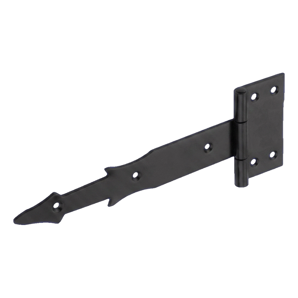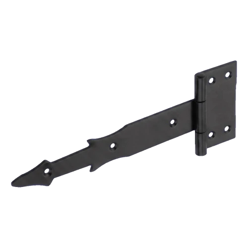 Mökkisarana 250 mm mustassa värissä on kestävä saranaosa ovien, porttien, puutarhaporttien ja mökkien asennukseen. Varren koristeellinen kärki keihäsmuodossa antaa saranalle koristeellisen luonteen, joten se sopii erinomaisesti yhteen puisten ja metallisten aitaus- ja puutarharakenteiden kanssa.