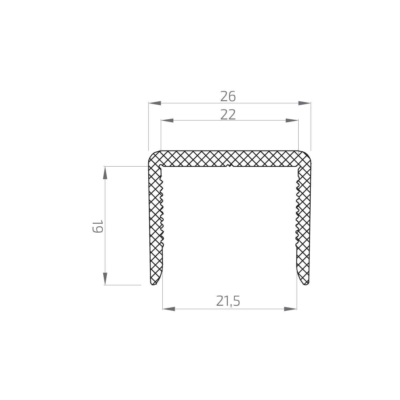 - Poikkileikkauksen mitat: 26 × 19 mm