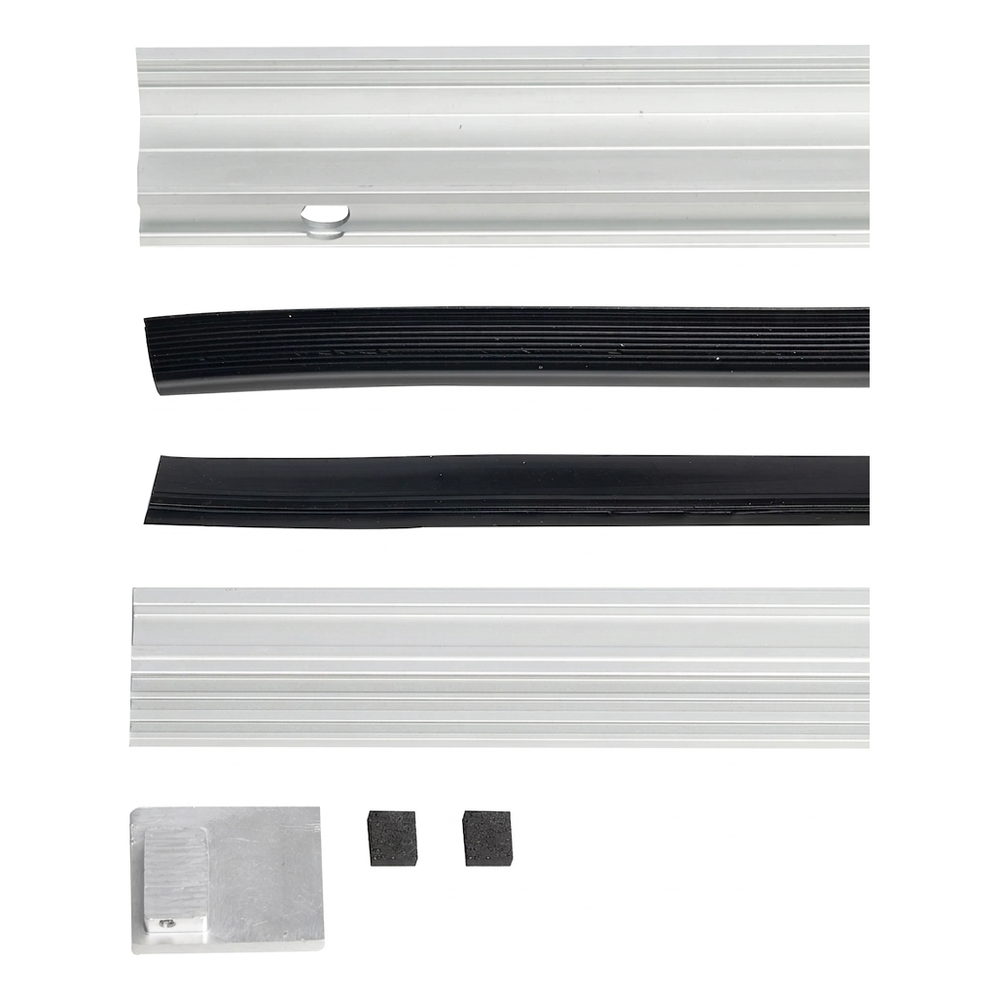 - 2 sivuprofiilia alumiinia (tarkasti mitattu, tehtaalla valmistelluilla asennusrei'illä)