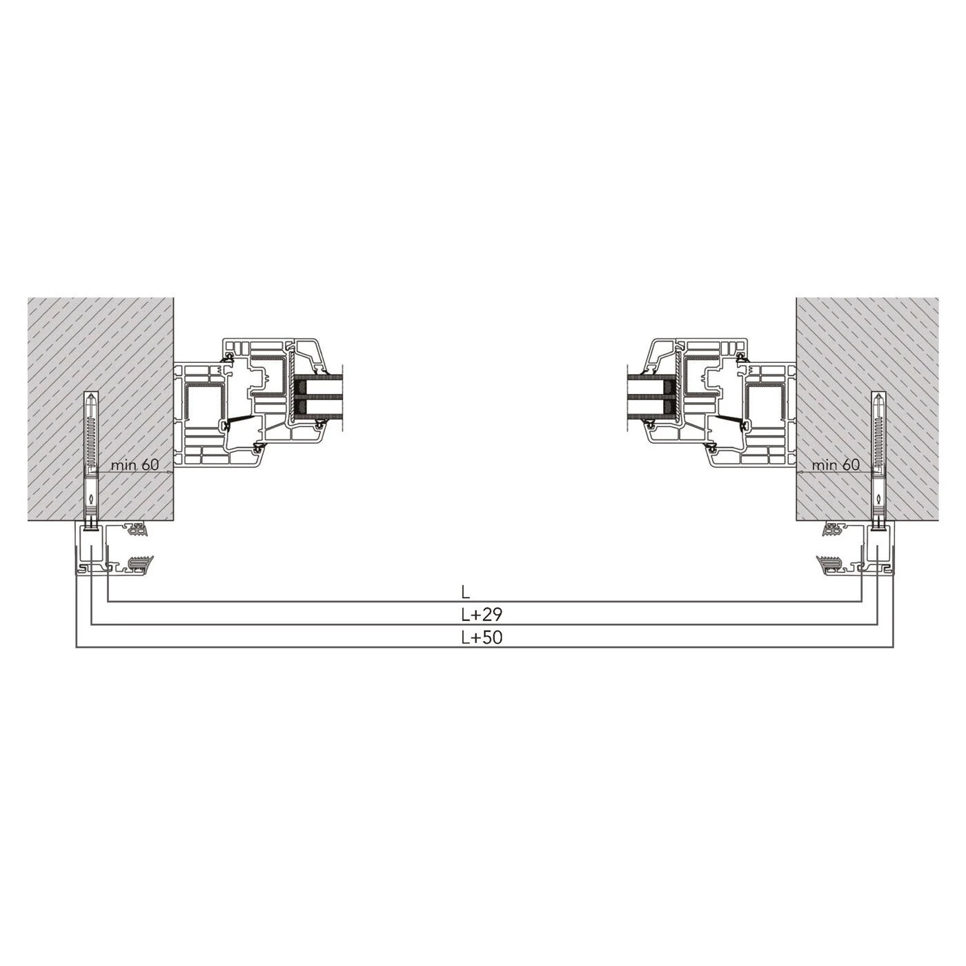- L + 50 mm — järjestelmän kokonaisulkoleveys (profiilien ulkoreunusten välillä)