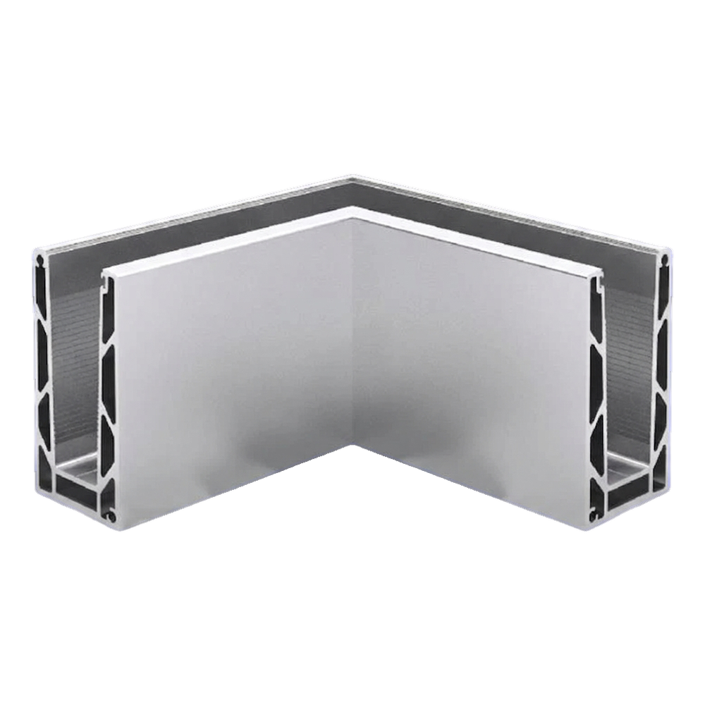 U-profiili sisänurkkaan 90° sarjasta Kozza KE 100 on valmis liitososa kahden perusprofiilijakson yhdistämiseen kokolasikaiteen sisänurkassa. Tarkka 90° kulmaleikkaus ja sopivuus tasaiseen KE 100 -järjestelmään tekee nurkan asennuksesta helppoa – lasin työntäminen paikalleen ja kiinnikkeiden kiristäminen riittää ilman lisäalumiinikäsittelyä työmaalla.
