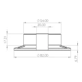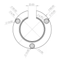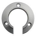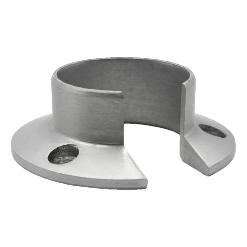 Osassa on tunnusomainen U-kirjaimen muotoinen leikkaus 20 mm leveydeltä, joka mahdollistaa sivuttaisen työntämisen käsijohteeseen ilman koko järjestelmän purkamista. Kiinnityslaippa 82 mm halkaisijaltaan takaa suuren kosketuspinnan alustaan. Kolme symmetrisesti laipan kehälle sijoitettua reikää takaavat kiinnittymisvoimien tasaisen jakautumisen. Ruuvinkantojen syvennykset (ø 10 mm) mahdollistavat ruuvin kannon upottamisen laipan pintaan, mikä takaa sileän ja esteettisen kiinnityksen.