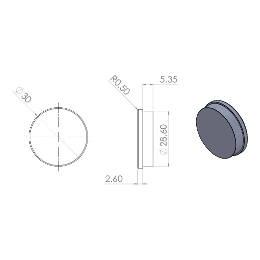Tulppa toimii kaiteiden profiilien asennuksen jälkeen jääneiden asennusreikien peittämiseen. Elementin alapuoli on varustettu konsentrisilla urilla, jotka varmistavat luotettavan kiinnittymisen profiilin reikään. Elementti painetaan suoraan reikään – ei vaadi liimaamista tai mekaanista kiinnitystä, mikä nopeuttaa merkittävästi viimeistelytyöt rakennustyömaalla.