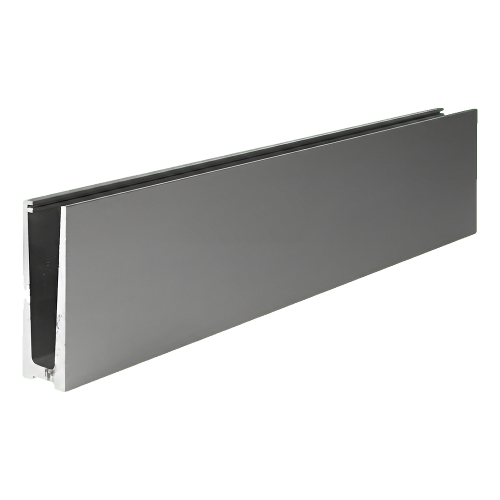 Profiili on tarkoitettu pylväättömien (kokolasi) kaiteiden rakentamiseen, joissa karkaistu- tai laminaattilasitaulut kiinnitetään yläpuolelta. Sopii sekä kaupallisiin kohteisiin — toimistorakennuksiin, hotelleihin, kauppakeskuksiin — että moderneihin asuinrakennuksiin. Kiitos 5 metrin pituuden, se mahdollistaa pitkien jännemitojen toteutuksen minimaalisella liitosten määrällä, mikä lyhentää merkittävästi asennusaikaa ja parantaa asennuksen visuaalisia arvoja.