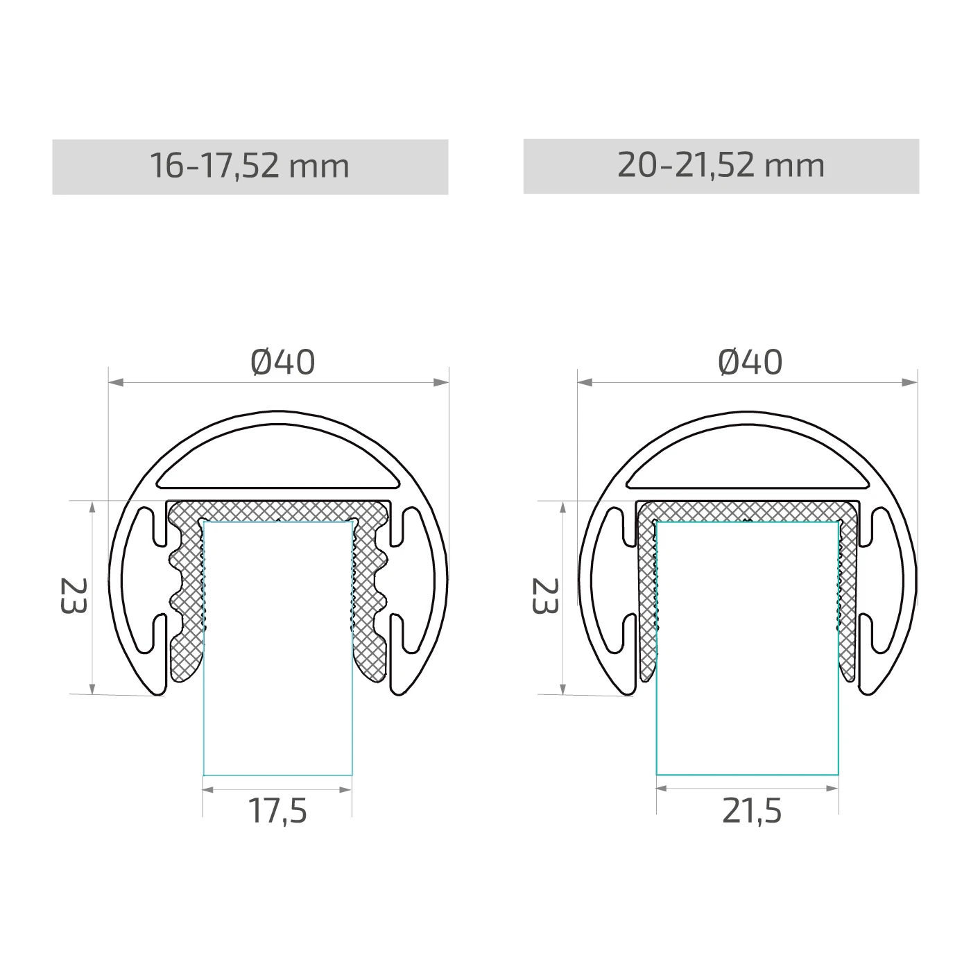 Pyöreä alumiini käsijohdin Kozza Ø40 mm on ammattitasoinen ratkaisu lasikiinnitykseen paksuudella 16–21,52 mm. Yleiskäyttöisen profiilin rakenteen ja vaihdettavien tiivisteiden ansiosta yksi käsijohtimen malli palvelee kahta paksuusaluetta — riittää valita sopiva tiiviste järjestelmän mukauttamiseksi tiettyyn projektiin. Matta anodinen viimeistely antaa kaidejärjestelmälle elegantin, modernin luonteen ja takaa kestävyyden sekä sisä- että ulkotiloissa.