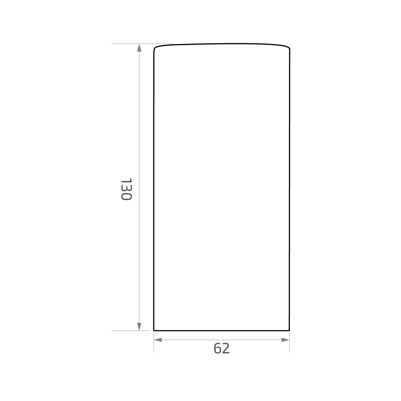 - Mitat: korkeus 130 mm × leveys 62 mm