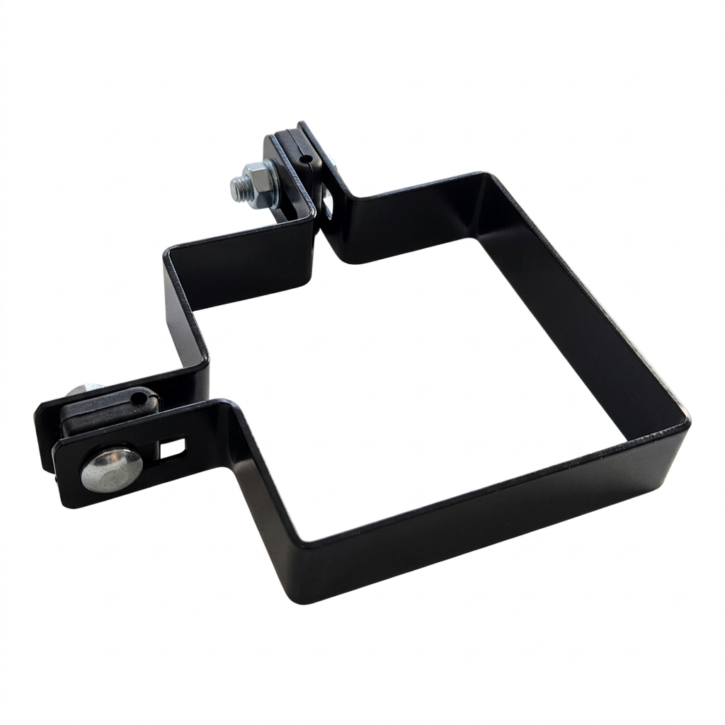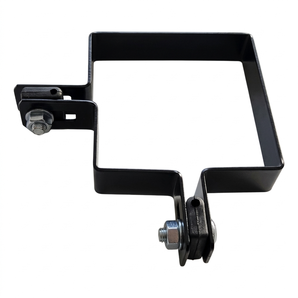 Kiinnike on täydellisesti sovitettu 100×100 mm tolpan poikkileikkaukseen, mikä takaa vakaan ja varman aidanrakenteen liitoksen. Pavun muotoiset asennusreiät mahdollistavat paneelin asennon säädön tolppaan nähden — helpottavat aidan tasauksen myös epätasaisessa maastossa.