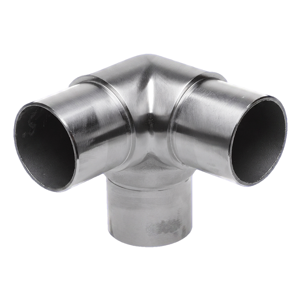Kulmaliitin kolmihaarainen kaidetelineeseen – putki 42,4x2 mm, ruostumaton teräs AISI 304, satiini