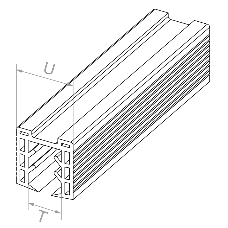 - Profiilin poikkileikkaus (U): 24 × 24 mm