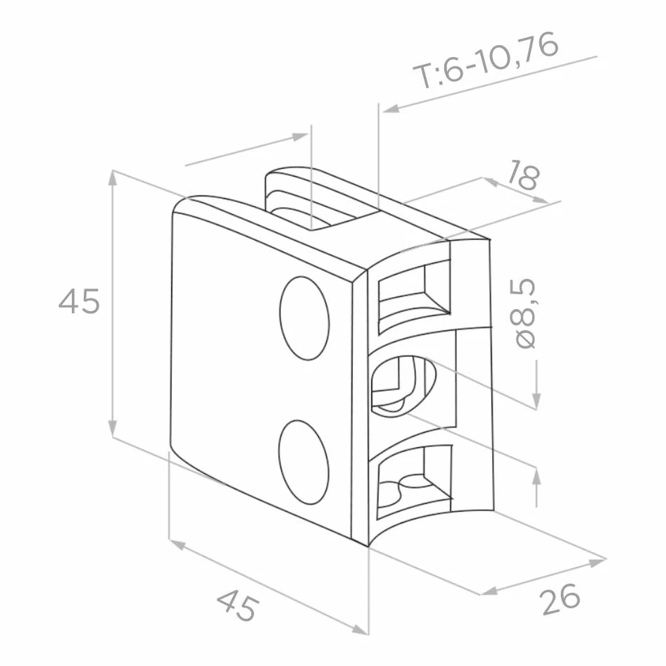 Lasikiinnike 6-10,76 mm 45x45x26 mm pin AISI 304 järjestelmä 42,4 mm satiini