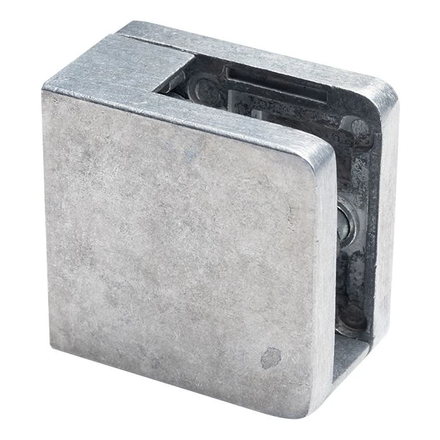 Suorakulmainen lasipidin 45×45×26 mm kannattimella ja varmistustapilla — suunniteltu 6–10,76 mm paksuisten lasilevyjen kiinnittämiseen järjestelmälasisuojakaiteisiin. Kompakti raakapintainen zamak-rakenne varmistaa luotettavan lasin stabiloinnin tasaisilla pinnoilla, ja kuusiokoloruuvit mahdollistavat puristusvoiman tarkan säädön ilman pidikkeen irrottamista.