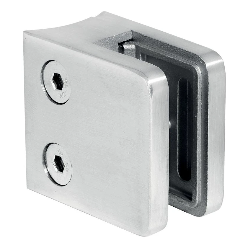 Suorakulmainen lasipidin 45×45×26 mm AISI 304 -ruostumattomasta teräksestä satiiniviimeistelyllä. Suunniteltu 6–10,76 mm paksuisten lasilevyjen kiinnittämiseen 48,3 mm halkaisijaltaan oleville putkipylväille. Tuote asennetaan ruuvaamalla — tarjoaa vakaan ja esteettisen kiinnityksen lasipaneeleille kaiteissa ja väliseinissä.
