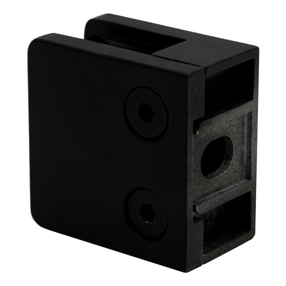 Suorakulmainen lasikiinnike 45×45×26 mm musta – zamak, tasainen pinta