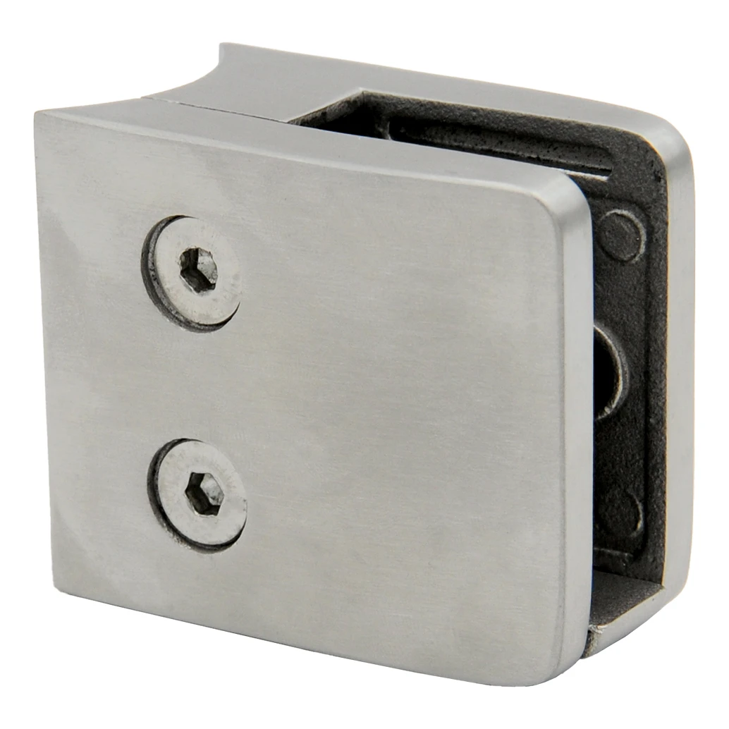 Suorakulmainen lasipidin kannattimella ja varmistustapilla, joka on suunniteltu lasipaneelien ammattimaiseen kiinnittämiseen 42,4 mm halkaisijan putkiin. Valmistettu AISI 304 -ruostumattomasta teräksestä satiiniviimeistelyllä — tarjoaa esteettisen, modernin ulkonäön sekä korkean korroosionkestävyyden, minkä ansiosta se soveltuu sekä sisä- että ulkotiloihin.