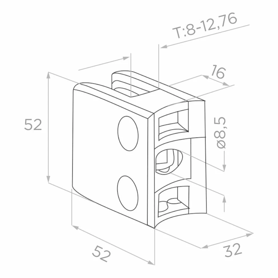Lasipidin 8-12,76 mm 52x52x32 mm konsoli ja tappi AISI 304 järjestelmä 42,4 mm satiini