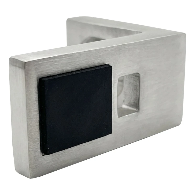AISI 304 teräs on materiaali, jolla on korkea korroosiokestävyys, kosteudenkesto ja mekaanisten vaurioiden kesto, mikä merkitsee kannattimen vuosien mittaista käyttöä ominaisuuksien ja ulkoasun menetyksiä. Satiininen pinta sopii erinomaisesti yhteen lasin ja muiden kaiteen osien kanssa luoden yhtenäisen, modernin sisustuksen.