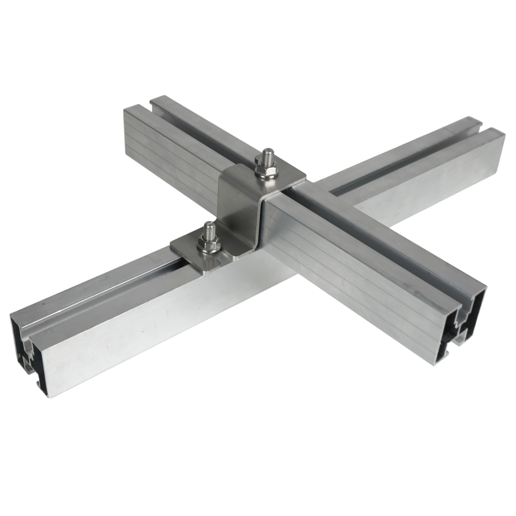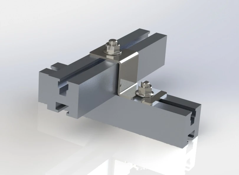 44,5x40 mm:n kestävä A2 (304) -ruostumattomasta teräksestä valmistettu ristikiinnike takaa profiilien kestävän ja korroosionkestävän liittämisen aurinkosähköjärjestelmiin.