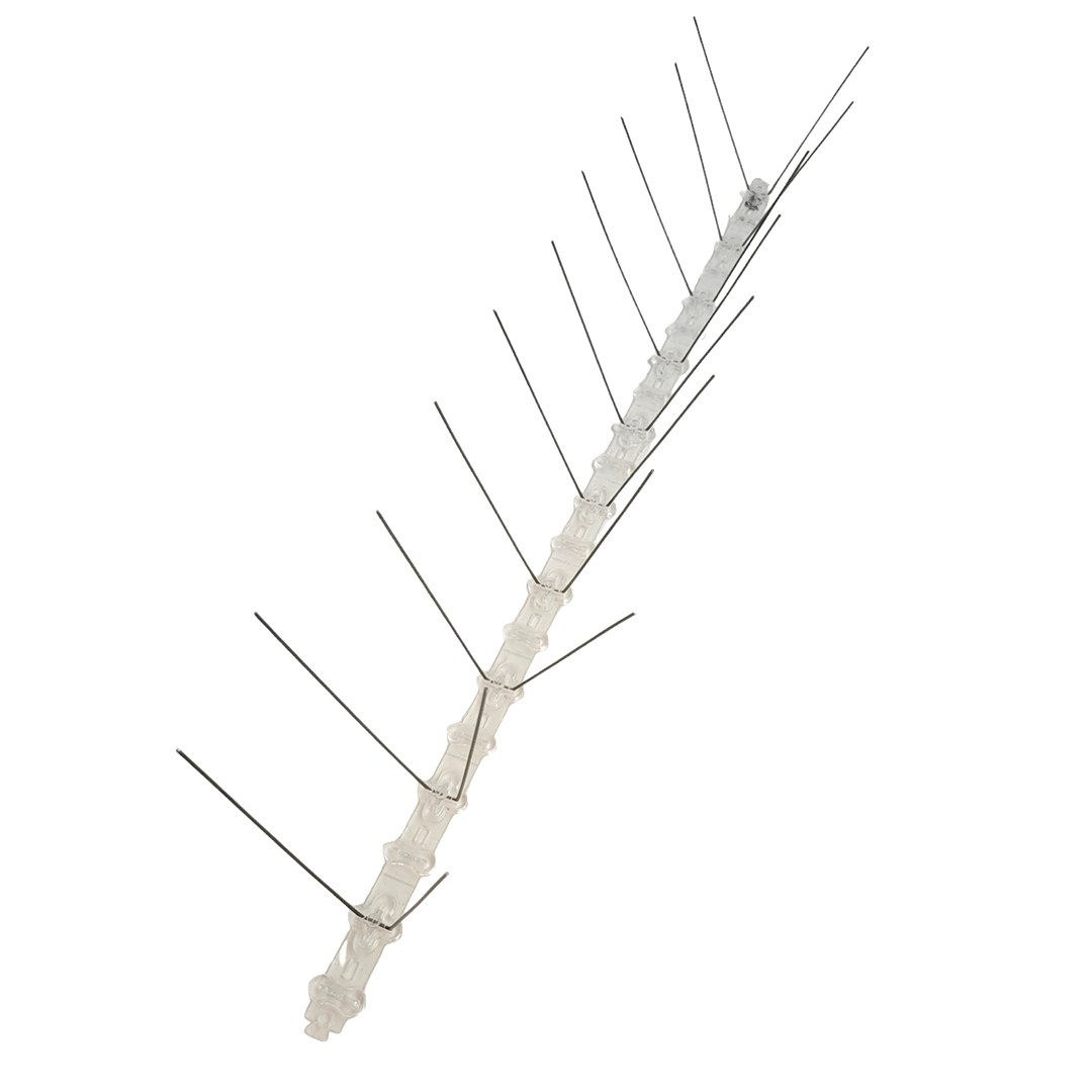 - Joustava muotoilu: Piikkien pohja on valmistettu joustavasta, läpinäkyvästä polykarbonaatista, joka on sään- ja UV-kestävää, mikä takaa tuotteen kestävyyden myös pitkäaikaisessa ulkokäytössä.